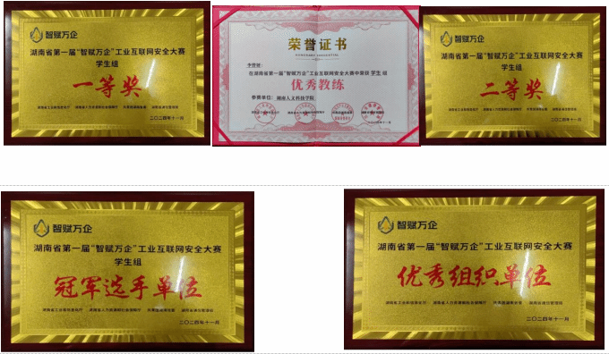 11月20日至21日,由湖南省工业和信息化厅、湖南省人力资源和社会保障厅、共青团湖南省委、湖南省通信管理局联合主办、联通(湖南)产业互联网有限公司承办的湖南省第一届“智赋万企”工业互联网安全大赛决赛暨2024年中国工业互联网安全大赛湖南省选拔赛在长沙举行,44118太阳成城集团在66支队中脱颖而出,2支参赛队成绩位列学生组的第1名、第2名,荣获全省一等奖、全省二等奖,并将代表湖南省参加“2024年中国工业互联网安全大赛”的全国总决赛。李曾妍老师获“优秀教练奖”,太阳成官网获得“冠军选手单位奖”“优秀组织单位奖”。
