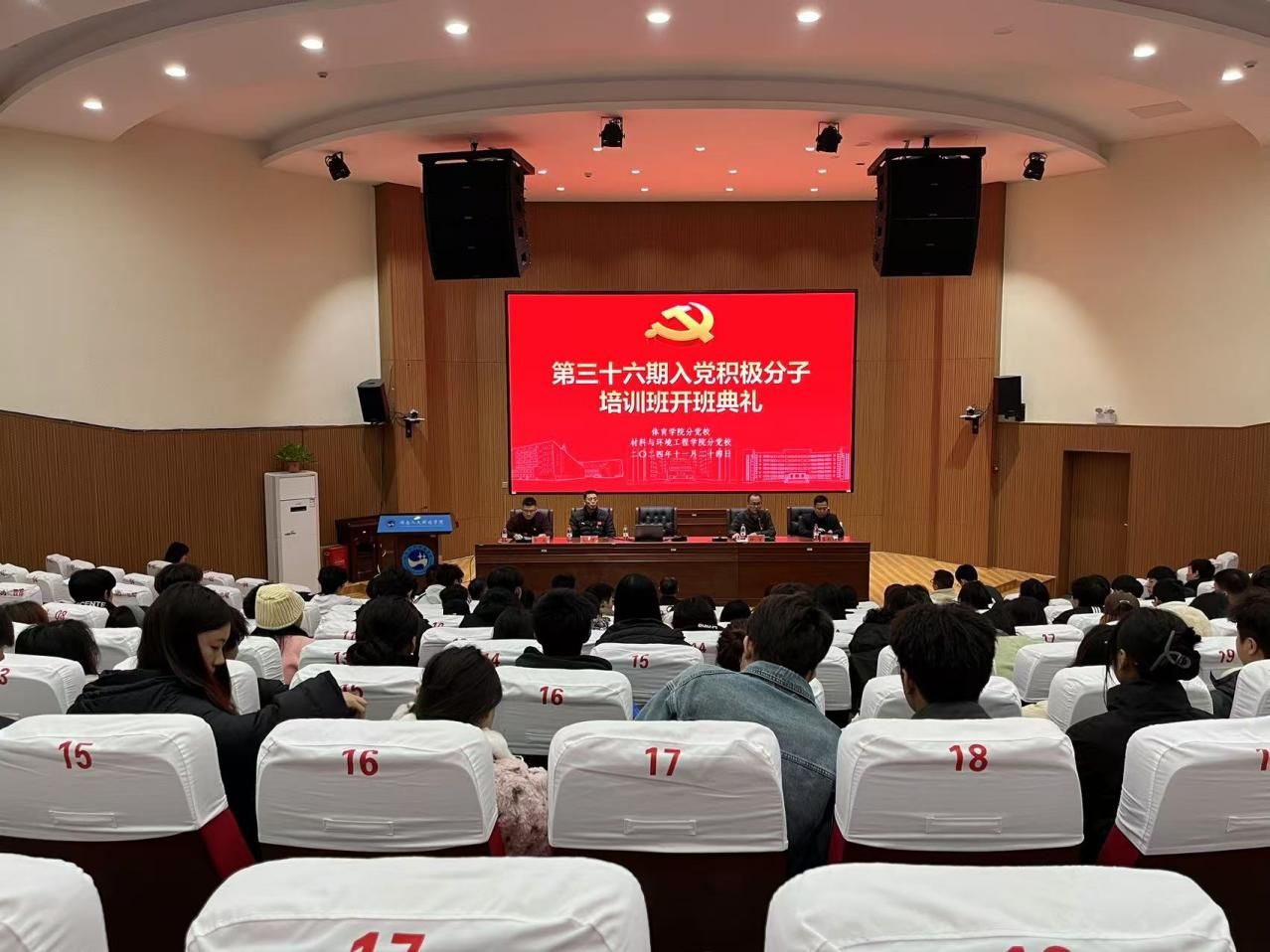11月24日,材料与环境工程学院、体育学院分党校在匠成楼报告厅共同举办第36期入党积极分子培训开班仪式。党委副书记朱强教授为本期入党积极分子作主题授课。材料与环境工程学院党总支书记钟勇主持。