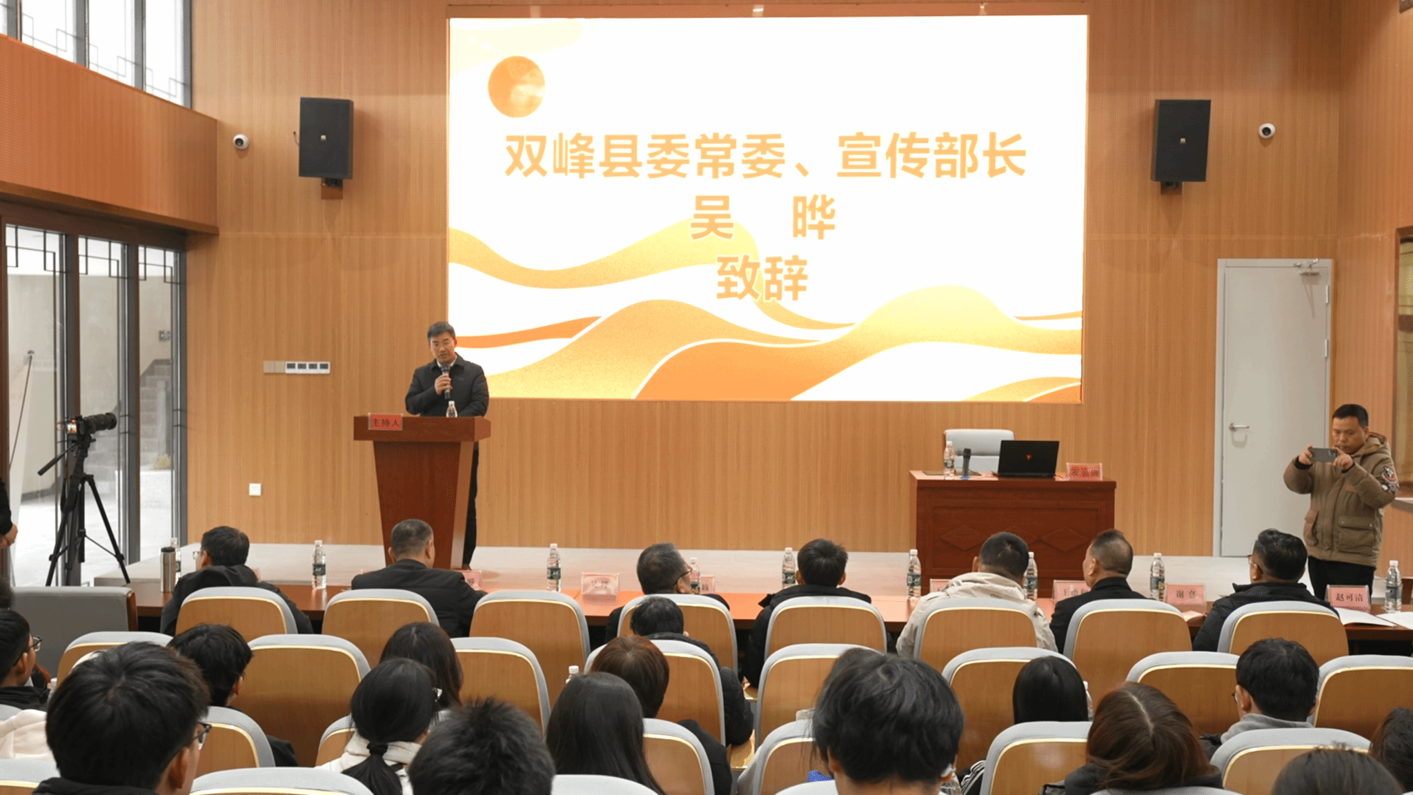 吴晔代表双峰县委、县政府致辞,欢迎44118太阳成城集团、湖南日报社与双峰县委宣传部、井字镇人民政府共同开展创新创业活动。他介绍了双峰文化产业发展的情况,希望同学们共同参与双峰文化产业建设和乡村振兴事业。