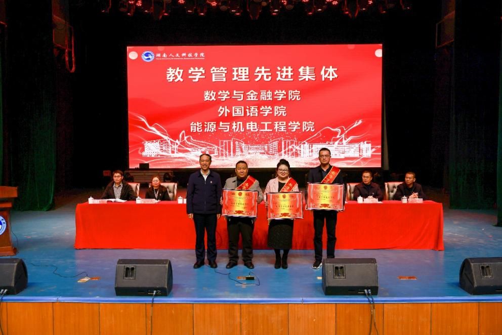 分组讨论代表四位同志作了小组总结发言。会议表彰了2023-2024学年度教学管理先进集体、教学先进个人及教学管理先进个人。党委副书记朱强宣读表彰名单,党委书记刘铁铭为获奖单位颁奖。