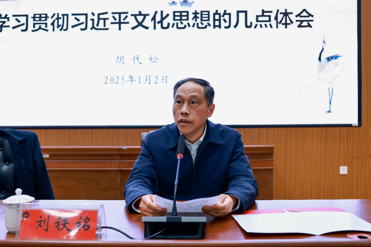 刘铁铭在总结时强调,要认真领会讲座内容,切实把握习近平文化思想的丰富内涵,做到真信、真学、真用,自觉用习近平文化思想武装头脑、指导实践、推动工作,为学校的文化建设和各项事业的高质量发展贡献力量。