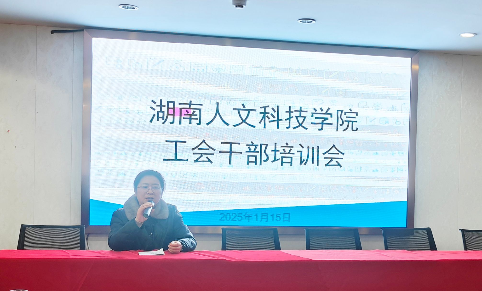 为贯彻落实中国工会十八大精神,加强学校各基层工会干部队伍建设,规范学校工会经费使用管理,服务学校高质量发展,1月15日,校工会举办了工会干部培训会,校党委委员、纪委书记、分管工会工作校领导凌艳平出席。校工会委员会委员、经费审查委员会委员、女工委员会委员、分工会主席以及校工会工作人员50余人参加了本次培训。工会常务副主席刘志成主持培训会。