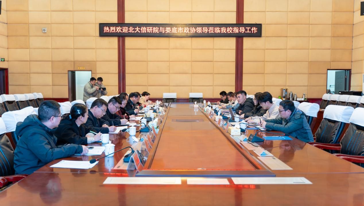 北大信研院相关工作人员、娄底市政协相关工作人员、学校科研处负责人、信息中心负责人、信息学院负责人及相关教研室主任参加会议。(文/图:龚成 唐宇兴;一审:龚成;二审:周桃云;三审:谢四连)