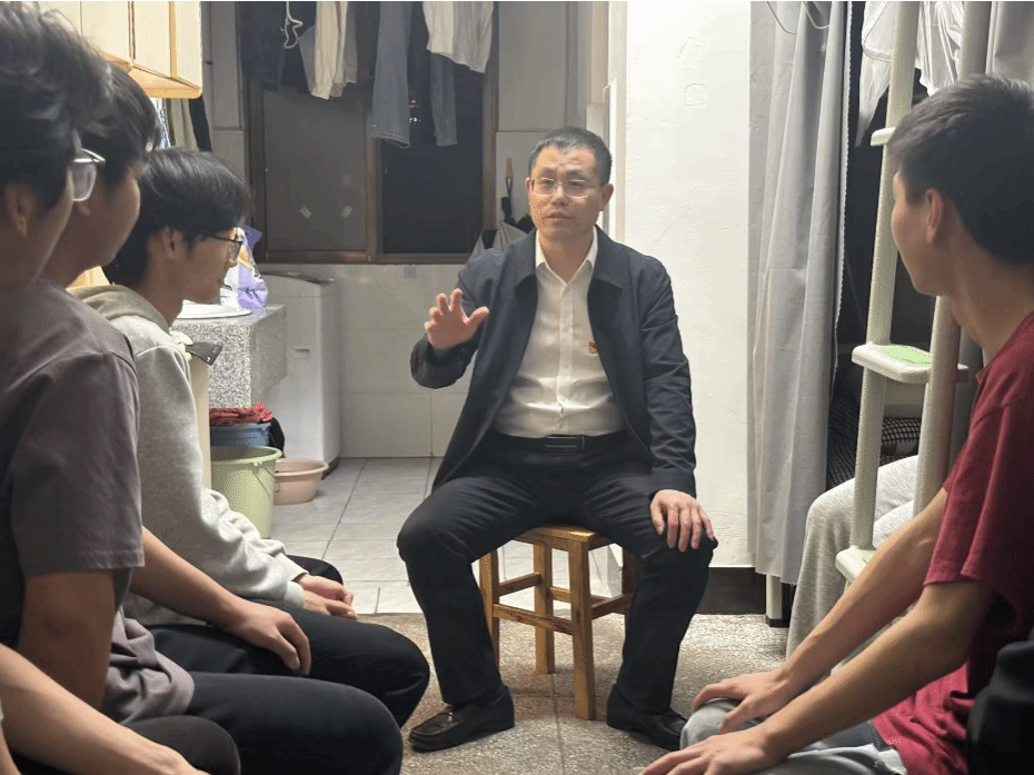3月26日晚,校领导及中层干部深入学生寝室开展专题“三联系”活动,宣讲2025年全国两会精神,倾听和了解学生急难愁盼问题,推动思政教育融入育人全过程。