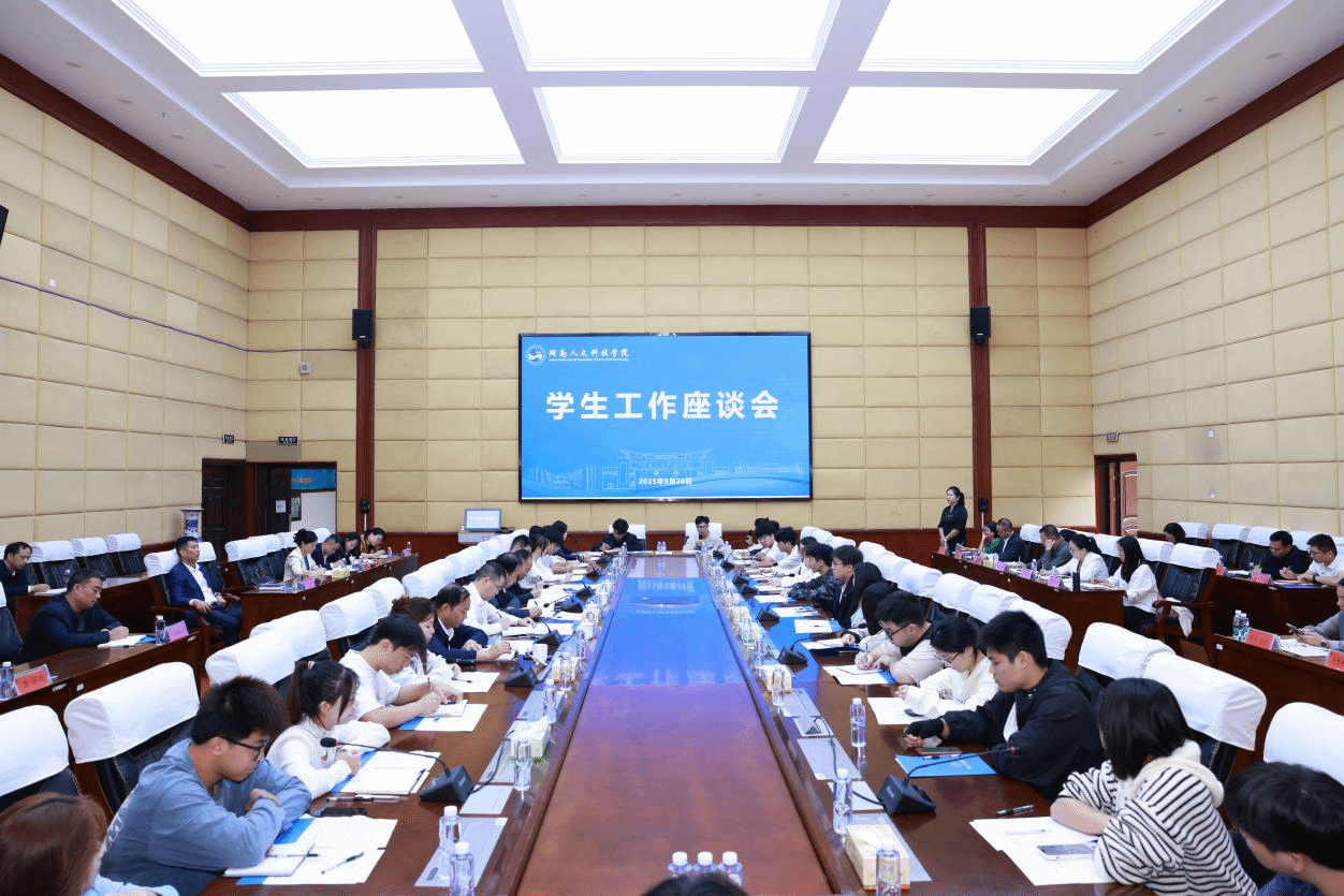 党政办、学生工作部、计划财务处、后勤基建处、国有资产管理处、保卫部、团委等职能部门负责人、各二级学院党总支副书记以及30名学生代表参加座谈。