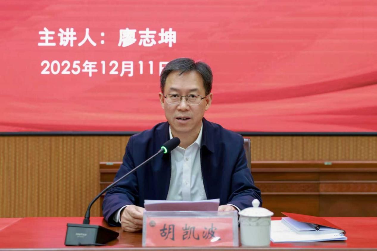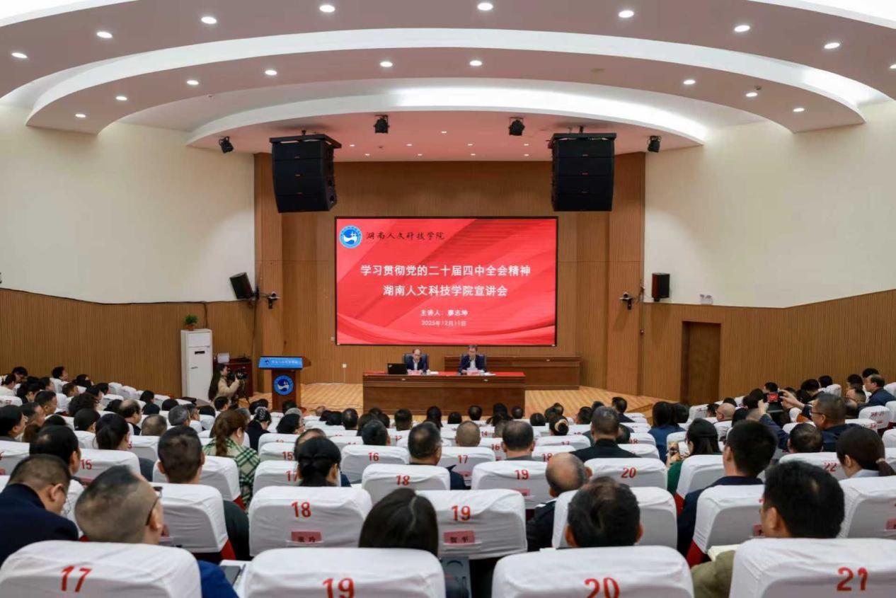 12月11日,太阳成官网学习贯彻党的二十届四中全会精神宣讲会在匠成楼报告厅举行。省委宣讲团成员、湖南工商大学党委书记廖志坤教授应邀来校作专题宣讲,校党委书记胡凯波主持。