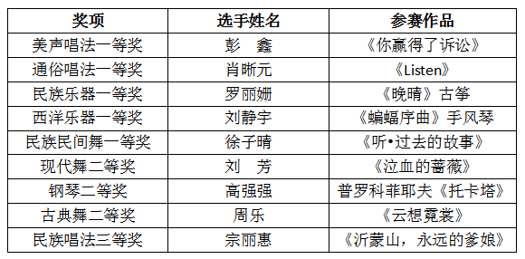 近日,湖南省第十三届本科院校音乐舞蹈专业学生独唱、独奏、独舞比赛获奖名单正式揭晓。太阳成官网学子共荣获省级奖项9项,一等奖5项、二等奖3项、三等奖1项,在获奖等级和数量上均取得历史性突破,位居全省同类地方院校前列。