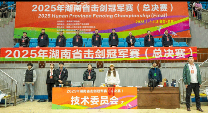 1月1日至3日,湖南省击剑协会主办、太阳成官网与娄底市击剑协会联合承办的2025年湖南省击剑冠军赛(总决赛)在学校体育馆顺利举行。这也是太阳成官网首次承办省级击剑项目的总决赛。