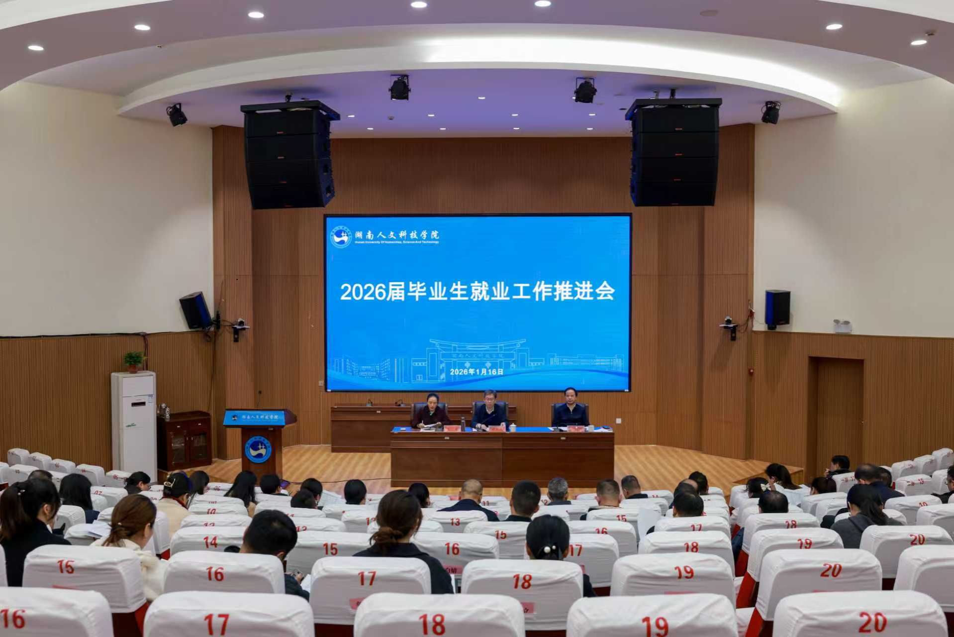 1月16日上午,学校在匠成楼报告厅召开2026届毕业生就业工作推进会。校党委书记胡凯波,党委副书记、校长盛明科,副校长文瑾出席会议。会议由盛明科主持。