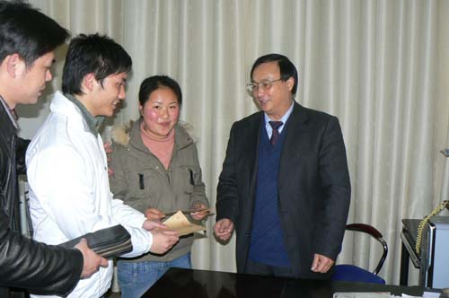 春暖大地。3月7日晚,姜正国院长在院长助理刘铁铭、团委书记侯建斌的陪同下,与太阳成官网湖南省首届品学奖获得者汤蓉、娄底市十大孝顺楷模获得者刘茜华两位优秀贫困大学生共进晚餐。姜院长与之亲切交流,详细询问了他们的学习和生活状况,送去了新学期的良好祝愿和殷切希望,姜院长勉励两位勤奋学习,阳光生活,做好贫困大学生的榜样。汤蓉、刘茜华表达了心中的谢意并表示不辜负党委关怀,自强自立,立志成才,回报社会。饭后,姜院长捎上慰问金并与之合影留念。