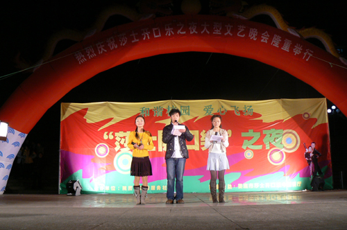 3月16日晚7:00,由院团委主办,洪锋服务社团承办的“莎士开口乐”爱心之夜大型文艺晚会在海园广场举行。学工处处长谢光绎、院团委副书记谢柳、莎士开口乐刘总、娄底日报、娄底广播电视报、娄底电视台、娄底公共频道、娄底政府公众信息网记者出席了晚会,全院新生及职教部学生近2000人观看了演出。