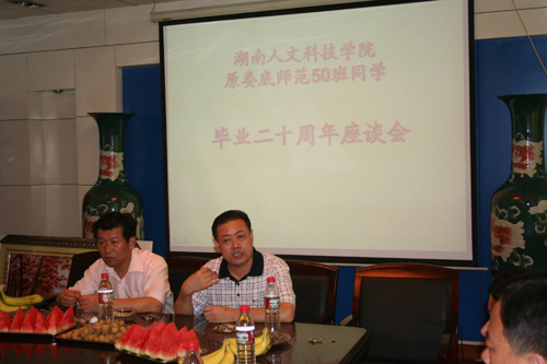 2007年8月3-5日,原娄底师范50班同学回到母校,举行毕业二十周年纪念活动。8月3日下午3点在学校四楼会议会进行座谈,纪委书记李尚益、党办院办主任李高海、校友会相关老师与当年的任课老师参加了会议,李尚益书记向校友们介绍了学校近年来的发展状况,李高海主任在会上对来自各地的校友表示热烈欢迎,希望校友们能常回家看看。校友们介绍了各自走出校门后的发展情况,抒发了对母校的怀念之情,并向学院和老师赠送了纪念品。