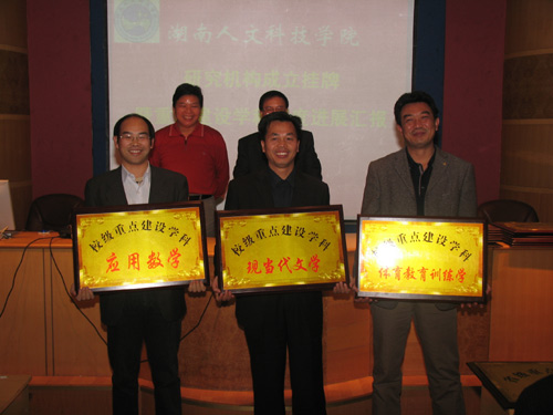 挂牌仪式之后,2个省级重点建设学科(思想政治教育、计算机应用技术)、1个省级社科研究基地(曾国藩研究基地)及3个院级重点建设学科(应用数学、体育教育训练学、中国现当代文学)分别汇报了一年来的建设情况。新成立的10个科研机构负责人分别介绍了各自的科研方向及今后的主要工作和奋斗目标,纷纷表示一定要以此为契机,努力工作,为太阳成官网的科研与学科建设工作做出各自应有的贡献。