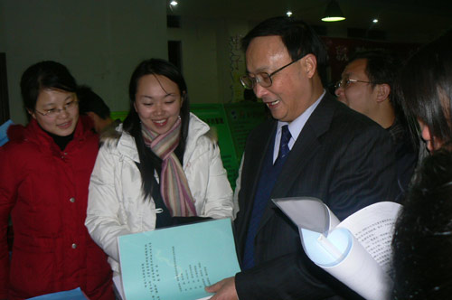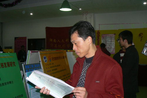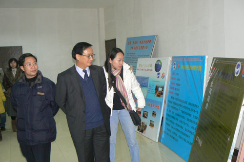 姜正国院长在通控系、计算机系、化学系、政法系展区前驻足良久,饶有兴趣的听取了《红外蓝牙防走失器》、《酒店门控系统》、《数字图像中的多重多目水印技术》、《新型除草剂》等项目负责人介绍,姜院长鼓励队员们进一步完善作品,争取在2008的全省挑战杯大赛中取得佳绩。