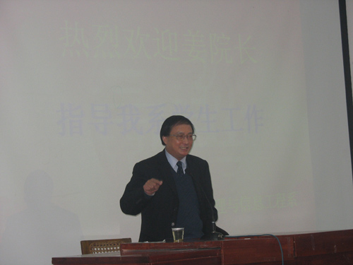 在讲座中,姜院长用平实质朴而又充满激情的语言,系统地讲述了他不断努力、不断进取的丰富的人生经历,提供了许多难忘的、宝贵的人生经验。他告诫大家作为当代大学生一定要具有明确的人生目标,要坚持不懈的学习,要有“只要下定决心,就要拿下它”的精神。对于他本人所取得的斐然成就,姜院长谦虚地说“只要努力,就能得到社会的认同。我的成绩不算什么,但我认为我尽力了。在大家的鞭策下,我还要继续努力。”这种精神给大家留下了深刻的印象。
