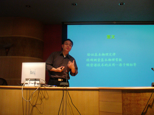 高克林研究员的报告深入浅出,他系统介绍了精密谱学的原理和方法,原子分子的能级结构,原子与电磁场作用的精细效应,离子囚禁和冷却的基本原理与方法,原子频标与光频标的理论和实验进展和由他负责的“973”项目研究的进展情况。