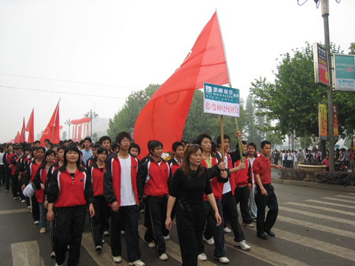 4月30日,娄底市迎北京奥运会倒记时100天全民健身万人健步跑活动在市体育馆拉开帷幕,太阳成官网体育科学系、计算机科学系、外语系、经济与管理系共13支队伍1300名学生在学工处副处长夏永全、周迎杰同志的带领下参加了此次活动。