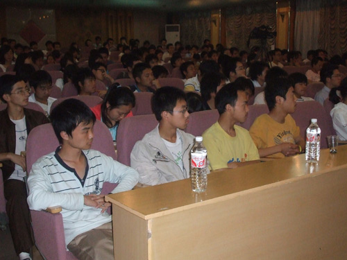讲座过程中,邹教授结合实例,深入浅出、细致生动地介绍了虚拟现实技术的基本概念,关键技术,发展趋势,应用领域和他正在参与研究的“人体面部表情的模拟”和“重大自然灾害的虚拟现实仿真”等项目的进展情况,并以此向我们描绘了虚拟现实技术广阔的发展前景和美好蓝图。在自由提问的环节中,同学们积极思考,踊跃提问。邹教授轻松而又认真地回答了同学们所提的问题,同时,他对同学们提出了殷切的希望。