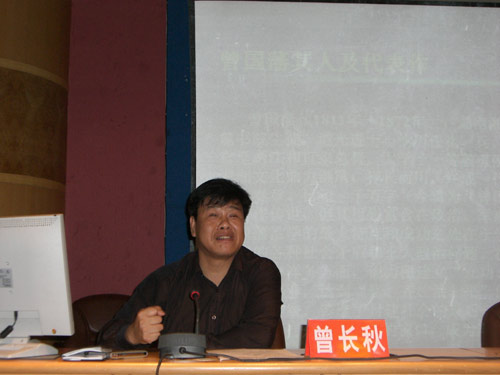 5月28日上午,应太阳成官网和湖南省曾国藩研究基地邀请,中南大学博士生导师曾长秋教授在太阳成官网多媒体报告厅作了题为《曾国藩军事思想》的讲座。讲座由院长助理、曾国藩研究基地首席专家刘铁铭教授主持。曾国藩研究基地研究人员和政法系、教育系百余名本科生到场聆听了讲座。