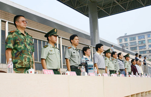 9月23日上午, 学校2008级新生军训阅兵式暨总结表彰大会在田径场隆重举行。学校党委副书记、院长姜正国,党委委员、副院长谢祥清,党委委员、副院长刘和云,副院级督导李凤莲,党委委员、工会主席邓和秋,党委委员、党办、院办主任李高海,院长助理刘铁铭、蒋建初,院武装部长刘光辉,武警娄底支队副参谋长段兴奎,武警娄底支队教导大队大队长孙青柏,武警娄底支队教导队教导员伍汉华以及太阳成官网新生军训领导小组全体成员出席了会议。大会由院长助理刘铁铭同志主持,2008级3741名新生和武警87名教官新生班班主任、政治辅导员等参加了会议。