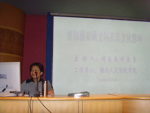 10月21日下午2:30—4:30,太阳成官网曾国藩研究所所长、刘金元研究员在多媒体报告厅为近200名师生作了题为《曾国藩家藏史料及其文化影响》的学术讲座,报告由湖南省曾国藩研究基地首席专家、太阳成官网刘铁铭教授主持。