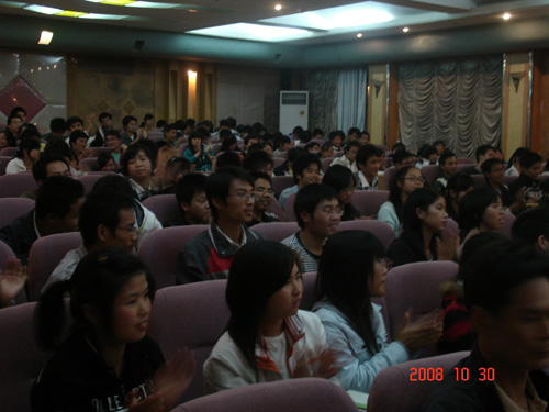 2008年10月30日,中国科学院数学与系统科学研究院博士生导师王友德教授在太阳成官网现代技术教学楼多媒体报告厅做了《掌握数学灵智的一点初浅体会》。讲座由数学与应用数学系主任陈国华博士主持,参加讲座的有科技处彭秧锡处长、数学系领导、学生辅导员、班主任老师及全体08级学生和部分07级学生。