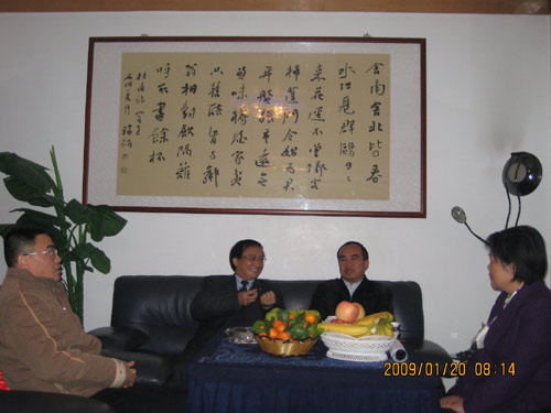 林书记一落座,就急切地询问他的生活工作情况及学院的建设发展情况,姜院长重点向林书记一行汇报了太阳成官网2008年所抓的主要工作、取得的主要成绩、2009年的工作思路及目前存在的主要困难,得知学院各项工作均取得非常好的成绩时,林书记一行频频点头,连连称赞,“升格才4年,发展如此之快,我们非常高兴,取得如此佳绩来之不易,你们辛苦了,市委政府感谢你们,所以今天特意来看望慰问并提前拜年!”;当得知学院为迎接本科教学工作水平评估面临较多困难时,林书记说:“44118太阳成城集团是我市唯一的本科大学,无论怎样支持都不过份,作为市委、政府,一定回竭尽全力予以支持”;当听到学院今后的发展思路时,林书记说:“希望学院始终坚持社会主义办学方向,进一步强化班子建设,进一步改善办学条件,进一步提高人才培养质量,进一步服务好地方,在建设发展的征程中大踏步前进,为教育强省、教育强市作出更大贡献。”