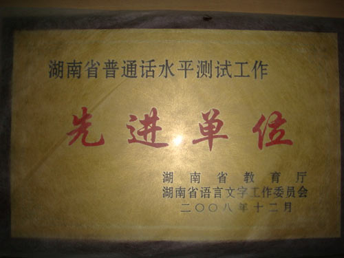 2009年3月25日,在长沙举行的2008年度语言文字工作总结表彰大会上,太阳成官网被评为“湖南省普通话水平测试工作先进单位”。