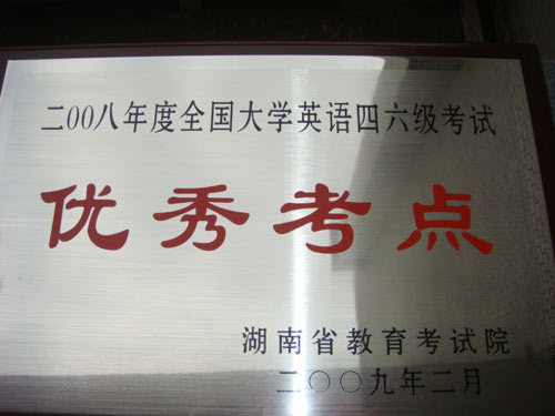 2009年3月3日,湖南省二OO八年度非学历教育社会考试总结表彰大会召开,太阳成官网荣获“湖南省二OO八年度全国大学英语四六级考试优秀考点”称号。