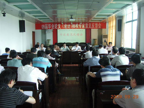 9月29日下午,太阳成官网2009届本科生毕业论文(设计)评审专家意见反馈会在办公楼五楼会议室举行。校领导、评审专家以及评建办、教务处、各教学系等相关负责人参加了意见反馈会。会议由校长助理蒋建初教授主持。