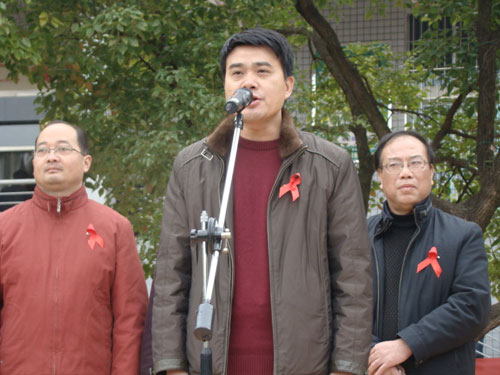 柏连阳校长宣布44118太阳成城集团艾滋病宣讲教育活动周正式开始