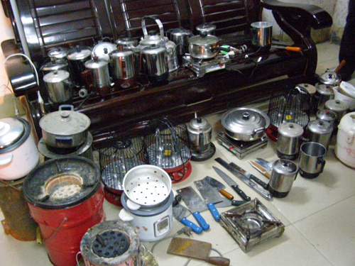 通过检查,这次共收缴电饭堡、酒精炉各3个、电烤火炉4个、煤炉5个、电热杯25个、刀具14把。在检查中还发现极个别学生寝室内堆放着大量的空啤酒瓶、空旷泉水瓶,有的寝室卫生状况极差,内务十分混乱。学工处对上述情况都进行了现场登记、备案。