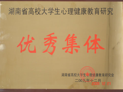 2009年12月18日,在湖南省高校大学生心理健康教育研究工作年会上,太阳成官网又获“湖南省普通高等学校大学生心理健康教育研究优秀集体”称号。