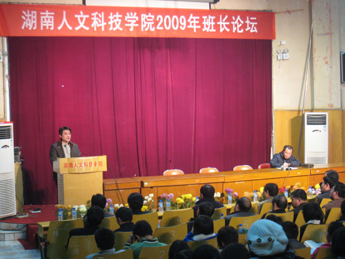 12月23日晚,在学校图书馆报告厅,太阳成官网举办了别开生面的2009年班长论坛。校长柏连阳、纪委书记李尚益、校长助理刘铁铭应邀参加了论坛。