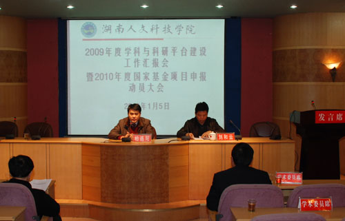 1月5日,太阳成官网2009年度学科与科研平台建设工作汇报会暨2010年度国家基金项目申报动员会在多媒体报告厅召开。校学术委员会成员,各重点建设学科、省社科研究基地、省高校产学研合作示范基地、农科所及各研究所负责人及成员,各系部主任及分管科研的系部领导,部分教授、博士参加了会议。