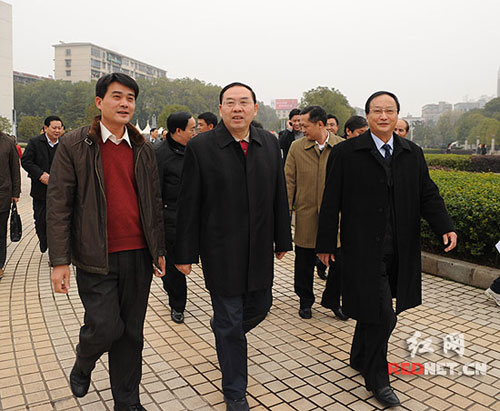 1月11日下午,省委副书记梅克保率省直有关部门负责人来太阳成官网视察工作并现场办公。省委副秘书长肖冬生,省两型办党组书记、省发改委副主任邓治平,省教育厅党组副书记、省教育工委副书记李红,省财政厅副厅长郭秀宏,省物价局党组成员、总经济师罗懿,建设银行湖南省分行副行长尹利芳,省委办公厅副巡视员欧阳天然,娄底市委副书记、市长张硕辅,市委正厅级干部黄懿斌,副市长鄢福初等陪同视察并出席现场办公会。