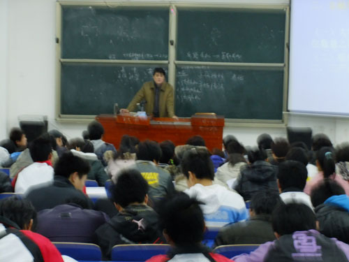 3月10日晚,校长柏连阳教授为09级体育系5个本科班的学生,上了一堂题为《金融危机下就业,路在何方》的就业指导课。