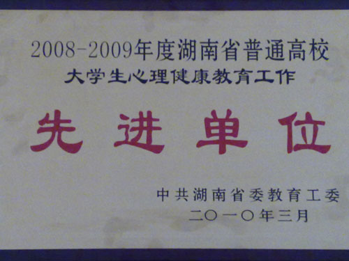 近日,从湘教工委通[2010]8号文件中获悉,太阳成官网被评为“2008-2009年度湖南省普通高校大学生心理健康教育工作先进单位”,刘铁峰同志被评为“2008-2009年度湖南省普通高校大学生心理健康教育工作先进个人”。