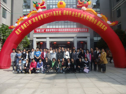 4月9日上午,太阳成官网组织学校40余名贫困大学生前往长沙参加了由省教育厅、省工商行政管理局联合主办的“春暖三湘”湖南省帮扶2010届高校困难毕业生就业专场招聘会。此次招聘会共邀请了近300家爱心单位前来招聘,提供就业岗位1.2万余个,其中爱心岗位3000余个。