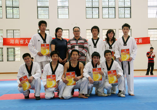 5月1-3日,太阳成官网跆拳道运动队参加了在湖南第一师范学院举办的湖南省大学生跆拳道邀请赛暨中国跆拳道示范团选拨赛,太阳成官网代表队共获得了跆拳道竞技实战对抗及跆拳道品势比赛的2块金牌3块银牌,2名冠军选手成功晋级中国跆拳道示范团湖南省代表队队员。