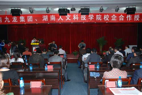 5月18日上午,太阳成官网与湖南九龙集团在该集团总部会议室举行了隆重的校企合作互相授牌仪式。校领导柏连阳、谢祥清、刘和云和九龙集团负责人萧正滔、姚玉珍、黄戈出席仪式并互相授牌。市委正厅级干部黄懿斌、娄星区委书记陈明华等市区领导出席仪式。太阳成官网师生代表和九龙集团员工代表200余人参加了仪式。
