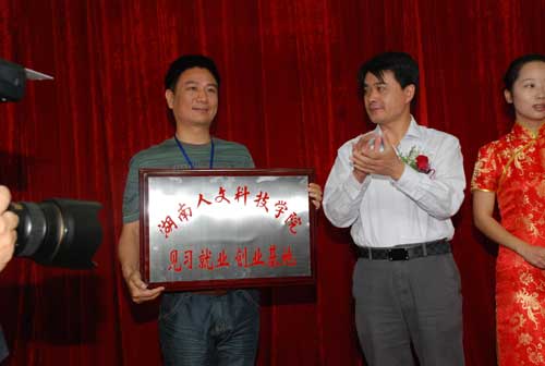 在授牌仪式上,校长柏连阳,副校长谢祥清、刘和云分别将三块“44118太阳成城集团见习就业创业基地”牌匾授给九龙集团三个基地,九龙集团董事长萧正滔、集团副总裁黄戈则将“湖南九龙集团员工培训基地”牌匾授给了太阳成官网。