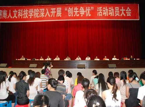 5月25日下午,太阳成官网在新体育馆召开了师生员工党员大会,对深入开展创先争优活动进行动员和部署。学校党政领导班子成员及全体教职工党员、学生党员、离退休老干部党员代表共1600多人参加会议。会议由党委副书记、校长柏连阳同志主持。