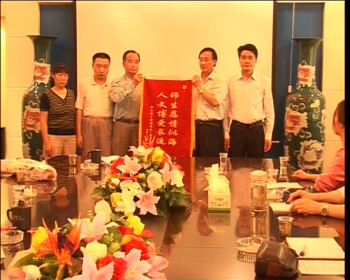 6月3日下午,明德楼第一会议室,太阳成官网优秀大学生代表、湖南省首例捐献眼角膜的在校大学生蒋小波的亲属风尘仆仆从益阳赶来学校,将一面写有“师生恩情似海,人文博爱长流”的锦旗赠送给学校,党委书记姜正国、校长柏连阳代表学校接受锦旗并向小波亲属表示深切慰问。