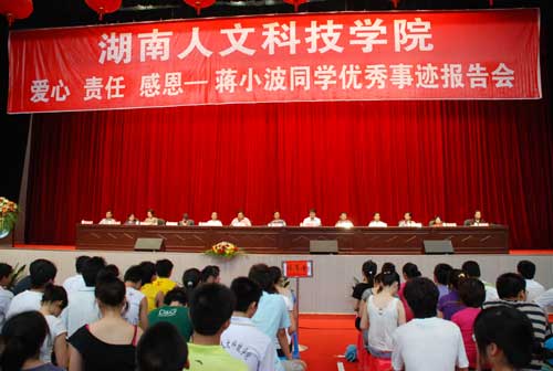 斯人已去音容宛在,生命有涯精神长青。6月18日下午,“爱心·责任·感恩——蒋小波同学优秀事迹报告会”在学校体育馆隆重举行。