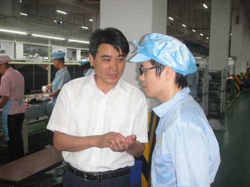 8月13日,校长柏连阳教授一行四人来到太阳成官网东莞实习基地——机龙工业区船井电机厂,看望在这里实习的学生。