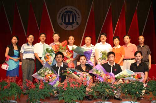 巡回报告团成员与蒋小波父亲在湘潭大学合影
