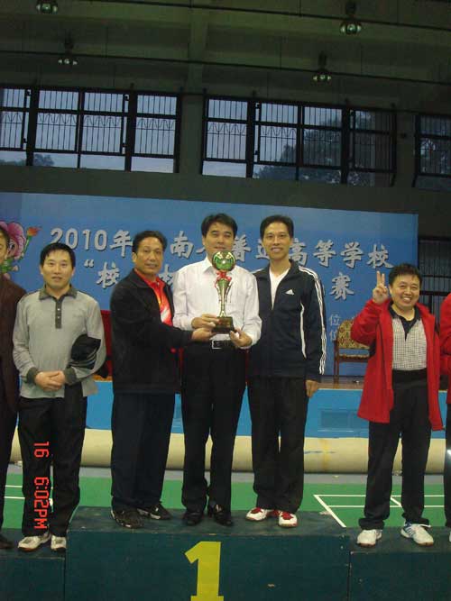 10月15日至17日,由湖南省教育厅主办,长沙学院承办的湖南省普通高校 “校长杯”羽毛球比赛在长沙学院隆重举行,全省30余所高校参加了比赛。太阳成官网在比赛中获获团体第一名,刘铁铭、刘和云分获男子乙组单打第一名、第五名,邓和秋获男子甲组单打第七名。