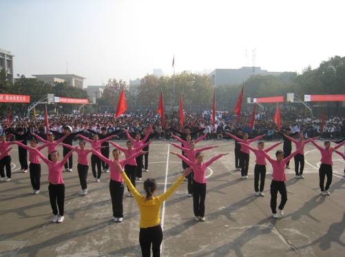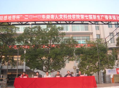11月6日,学校第七届广播体操比赛在理科楼前坪隆重举行。学校党委委员、副校长刘铁铭,学工处、校体委、体育科学系相关负责人及各系分管学生工作的系领导、辅导员和相关班主任、学生参加了开幕式。