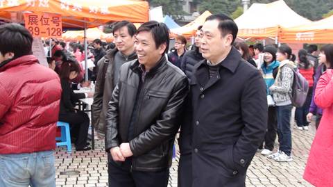 校长郭军、副校级干部谢祥清在招聘会现场视察指导